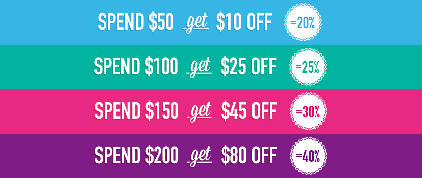 Want to save up to $80 with our 11th Birthday celebration? It’s easy with our "Spend More, Save More" promotion! Place your order before 9PM (AEST) July 26th and we’ll give you the following amount off your order: