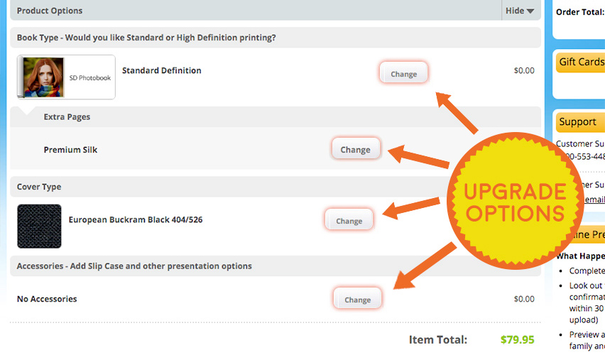 Once in the Shopping Cart you can add any additional features, or upgrade to HD (if you're making a Photo Book). Remember the more you spend the more you save!