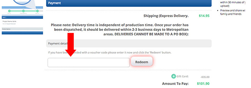 On the Payment page you will see a 'Voucher Code' field. Enter your Voucher Code in the field and click Redeem. This will deduct automatically calculate your discount for you.
