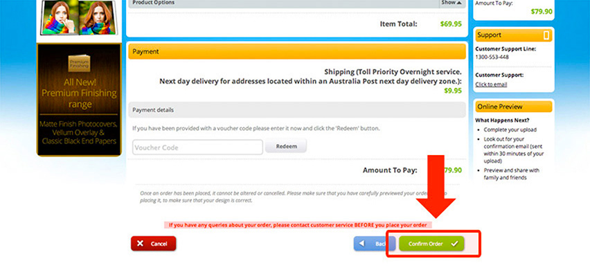 Then just ensure your project has been uploaded to our server to finalise your order.