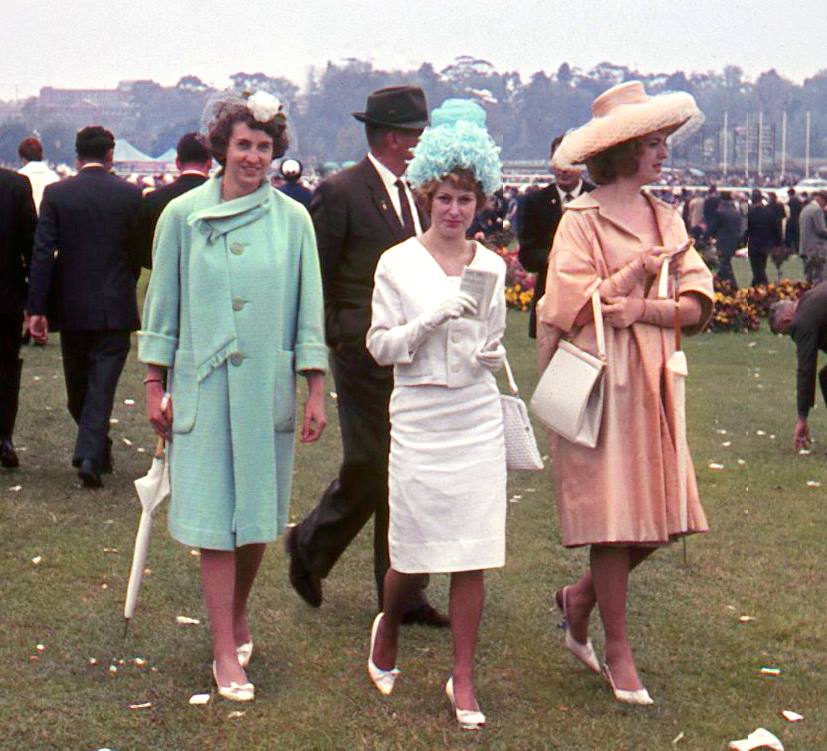 "My beautiful mum (Wendy Lyons), on the left, with two friends, strutting their stuff in fashions on the field at the Melbourne Cup @ 1963."