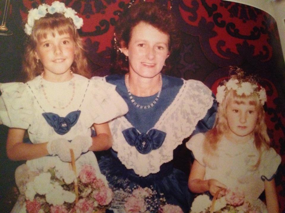 "Mum, my little sister and I as bridesmaid & flower girls at my Aunty's wedding in the 80's! Loving the dresses!"
