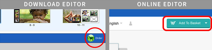 Once you have finished creating your Photo Book, proceed to the Shopping Cart by clicking the green 'Shopping Cart' icon (near the top right corner of the albumworks Editor).