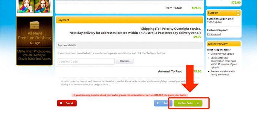 Then, just click ‘Confirm Order’ and ensure your project has been uploaded to our server to finalise your order.