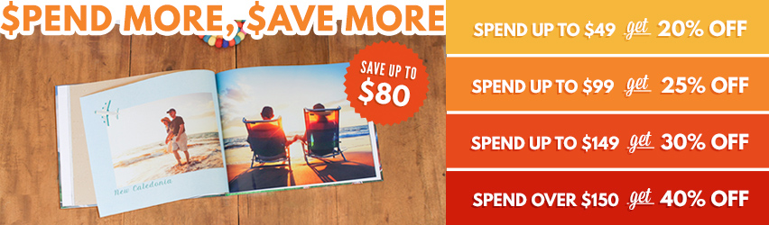 Want to save up to 40% on your albumworks order? It's easy with our "Spend More, Save More" promotion! Place your order before 9PM (AEDT) October 25th and we'll give you the following amount off your order: