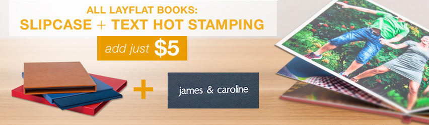 Layflat Books: Slip Case with Text Stamping for just $5!