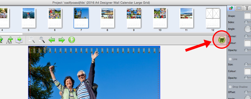 3. Once you’ve finished creating your Calendar, click on the green shopping cart in the top right hand corner to start the checkout process.