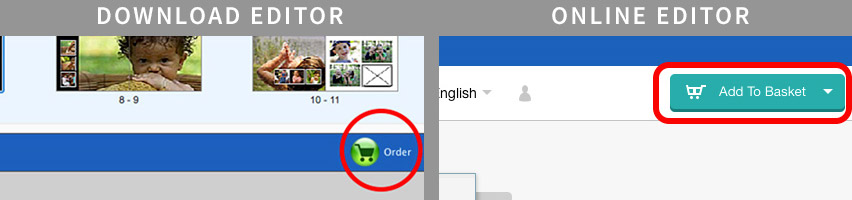 Create any product of your choice. When you're finished creating your book, click the green shopping cart icon in the corner to proceed to the Shopping Cart.