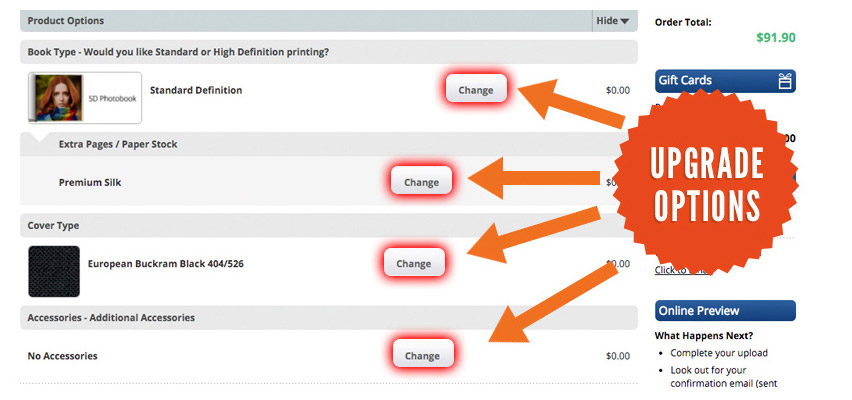 Once in the Shopping Cart you can add any additional features, or upgrade to HD if you’re making a Classic Photo Book. Remember, if your product total is greater than $160, you’ll save 42%!