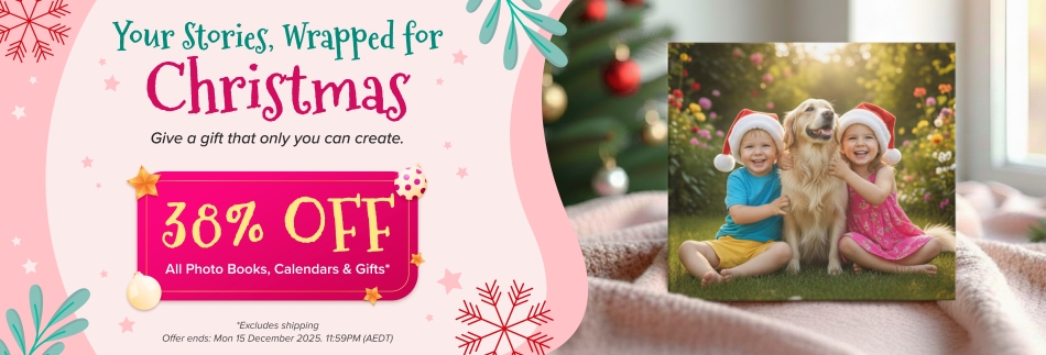 Christmas is just around the corner! Want 38% off your next albumworks product? Make sure you’re quick because this offer won’t last long! Place your order by 11:59PM (AEDT) December 15, 2025 to get your discount.