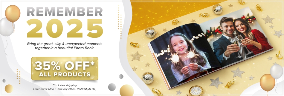 Our Christmas ordering cutoff has passed but you can still get 35% off your next albumworks order. Make sure you’re quick because this offer won’t last long! Place your order by 11:59PM (AEDT) 5th January 2026 to get your discount.