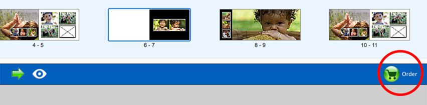 Create any Photo Book of your choice. When you're finished creating your book, click the green shopping cart icon in the corner to proceed to the Shopping Cart.
