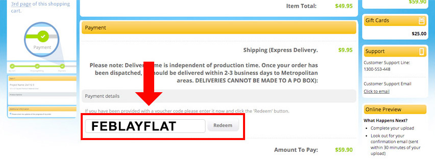 To receive your additional copies for free, you must apply the voucher code FEBLAYFLAT on the 'Payment' page in the Shopping Cart.