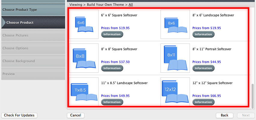Create any SOFTCOVER Photo Book of your choice, adding your extra pages in the Editor. Our small size Softcover Books start with 20 pages, while our bigger books start with 40 pages. You can add extra pages up to page 80 completely free of charge!