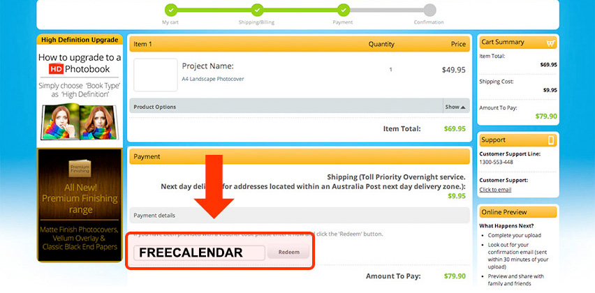 To receive your additional copies for free, you must apply the voucher code FREECALENDAR on the 'Payment' page in the Shopping Cart.