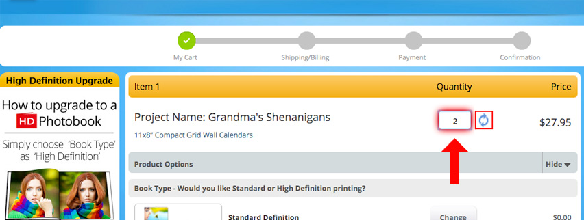 You will need to update your order quantity and click the refresh button to reflect how many Calendars you wish to order. Change quantity to 2 to receive 1 copy free. Change your quality to 4 to receive 2 copies free. Calendars must be ordered in multiples of “2” to receive free copies.