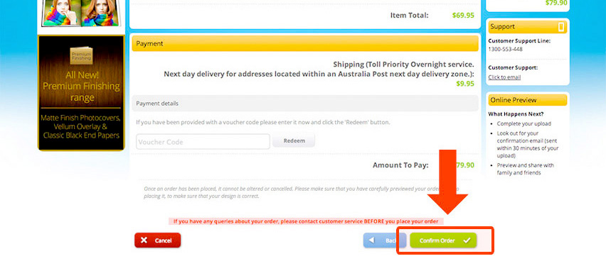 Then just ensure your project has been uploaded to our server to finalise your order.