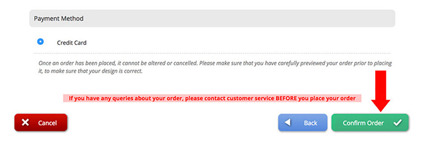 Then, just click ‘Confirm Order’ and ensure your project has been uploaded to our server to finalise your order.