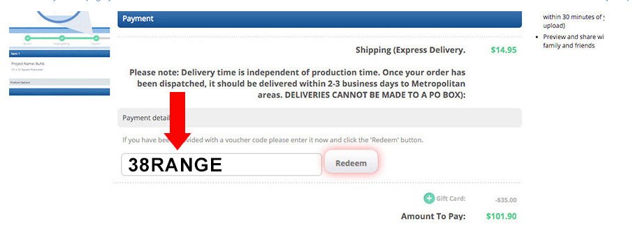 On the "Payment" page you will see a Voucher Code field. Enter the code 38RANGE in the field and click Redeem. This will reduce the cost of your product by 38%.