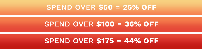 Want to save up to 44% on your next order? It's easy with our Spend More, Save More Special! Place your order by 11:59PM (AEDT) February 21st and we'll give you the following amount off your order: