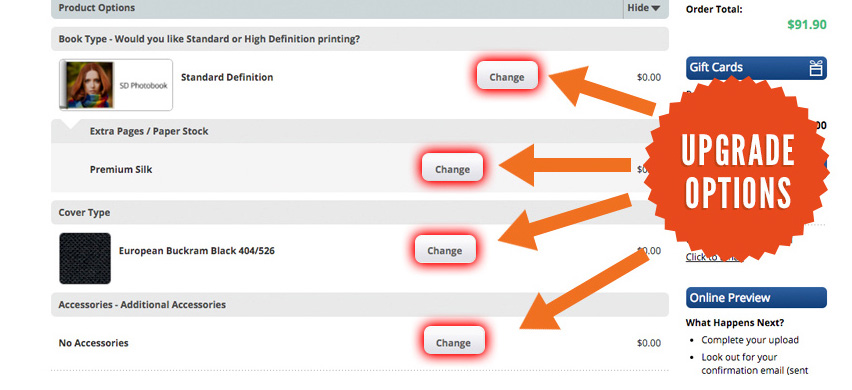 Once in the Shopping Cart you can add any additional features, or upgrade to HD if you’re making a Classic Photo Book. Remember, if your product total is greater than $175, you’ll save 48%!