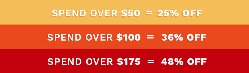 Want to save up to 48% on your next order? It's easy with our Spend More, Save More Special! Place your order by 11:59PM (AEDT) October 31st and we'll give you the following amount off your order: