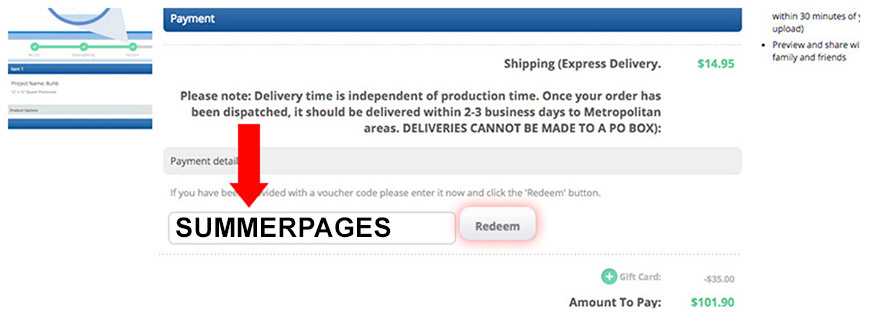 To receive your 40 extra pages for free, you must apply the voucher code SUMMERPAGES on the 'Payment' page in the Shopping Cart.