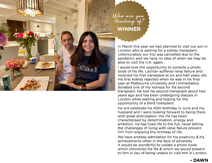 Our latest photo competition has come to an end! We asked our community: "Who Are You Thinking Of?" and to share a photo of their loved one. 4 winners have been selected and will each receive a $250 albumworks voucher to create a big beautiful HD Photo Book.