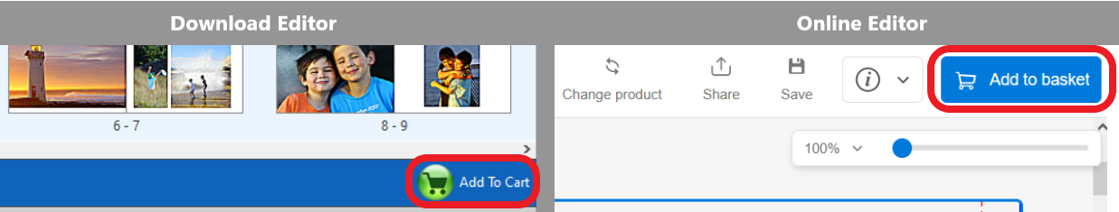 Create any Photo Book product of your choice. When you're finished creating your product, click the shopping cart icon in the corner to proceed to the Shopping Cart.