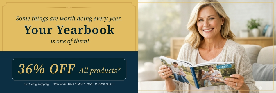 Want to take advantage of our Yearbook Special and get 36% off your next order? Hurry, place your order before 11:59PM (AEDT) on 11th March to take advantage of this offer.